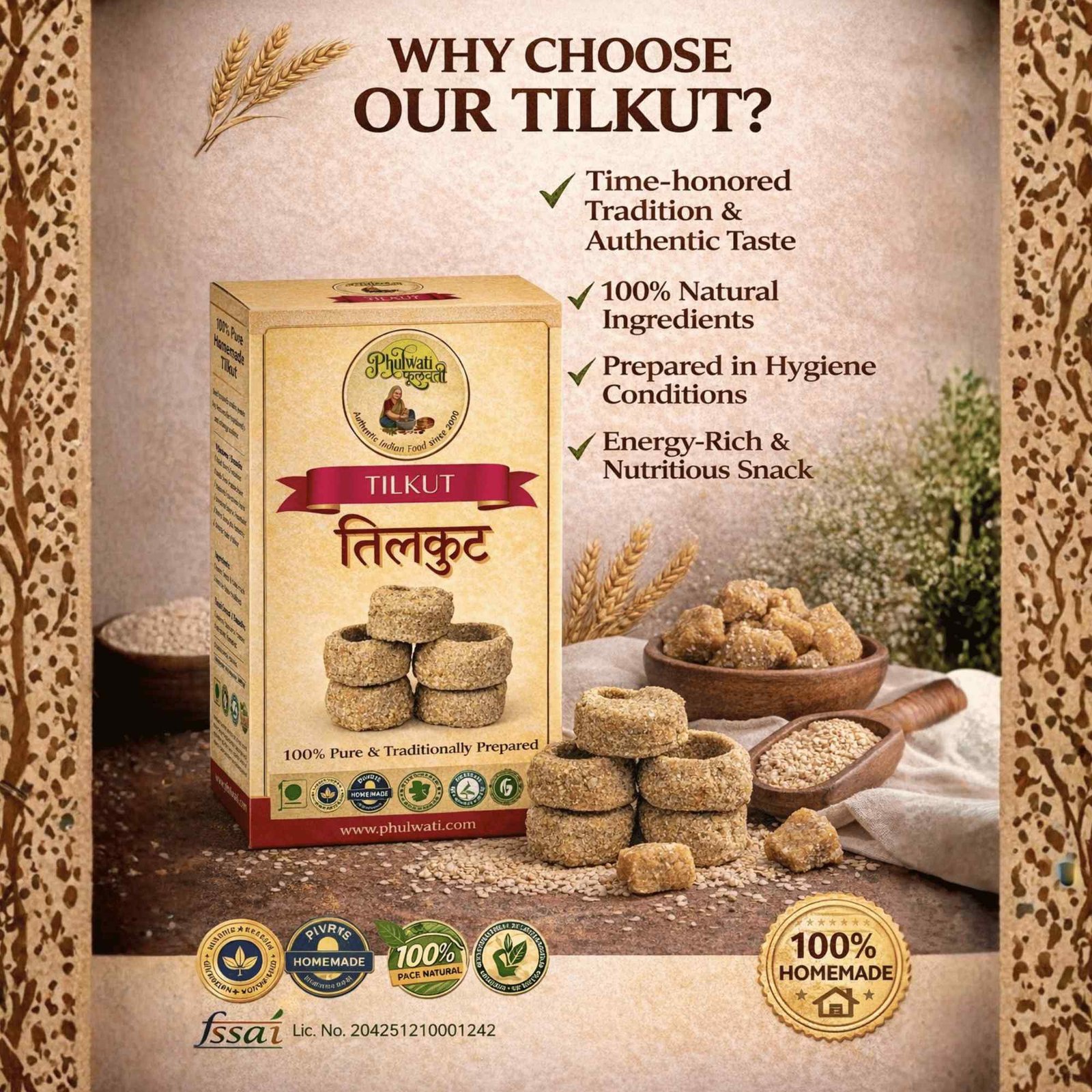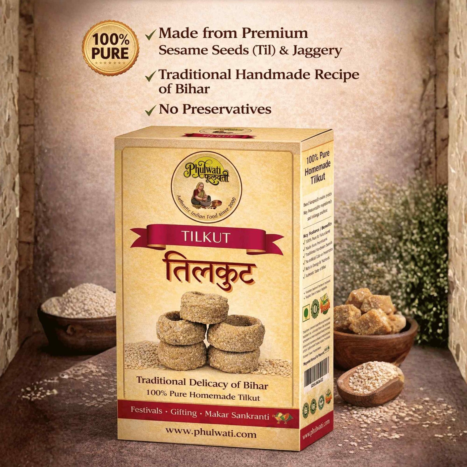 PHULWATI Tilkut | 100% Pure Homemade Sesame Sweet | Traditional Bihari Makar Sankranti Mithai | Made with Premium Til & Jaggery | No Preservatives