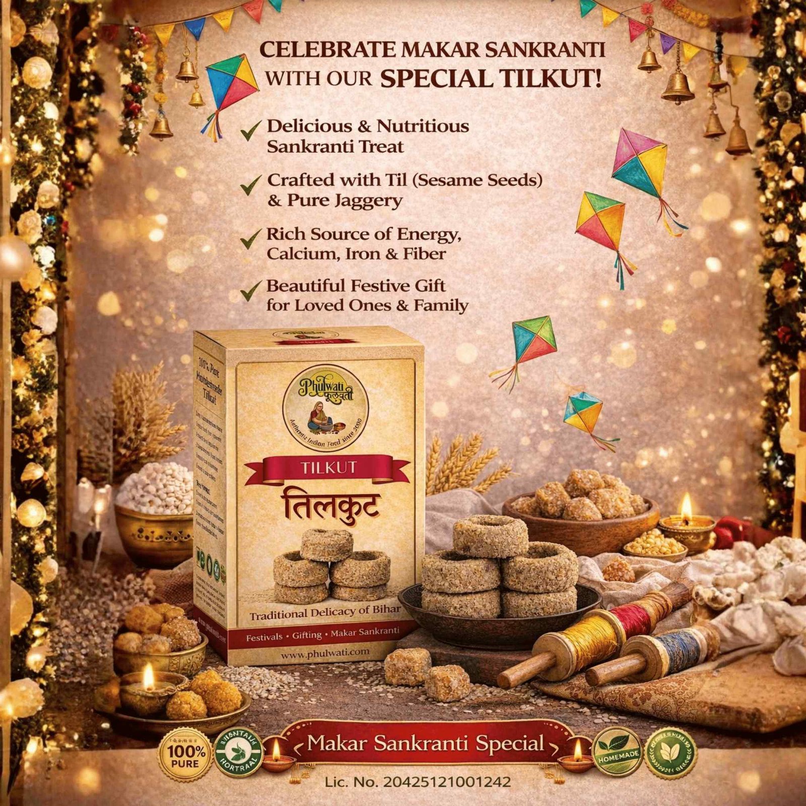 • Authentic Bihari Tilkut – Traditional winter sweet from Bihar, prepared using age-old homemade methods for original taste and crunch